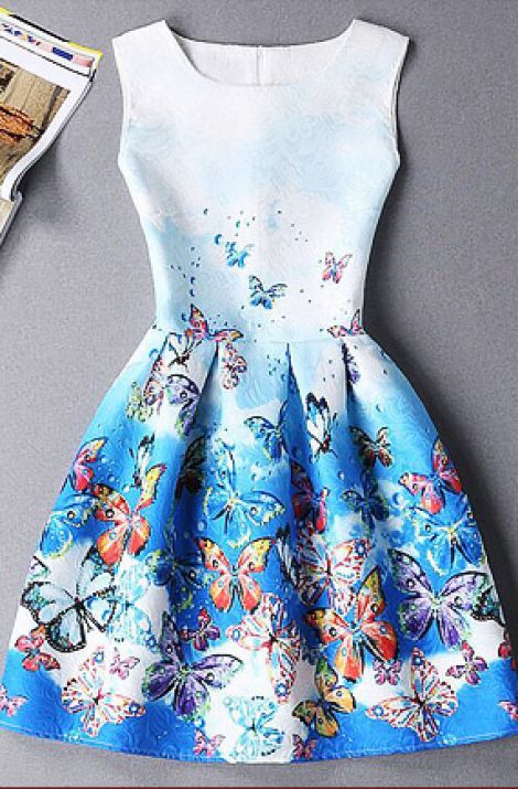 Round Collar Floral Print Sleeveless Dress For Women